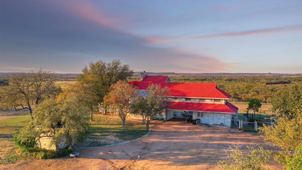 99.7 ACRE PEDERNALES RIVER ESTATE boasts 1700' flowing riverfront, bordering Wolf Creek to the west, and a spring-fed pond. The park-like setting created with grassy pastures and large pecan trees offers a tranquil setting. Located between Fredericksburg and Kerrville off of Kott Road, this secluded gem has endless possibilities suitable for livestock, vineyard, hunting, or a beautiful homestead. The diverse topography varies from the river and rises to a nice plateau where you can enjoy the lights of Fredericksburg off in the distance at night. The property is fenced and cross-fenced, currently home to 5 longhorns, an abundance of axis, whitetail and other wildlife. A newly constructed barn with a copper cupola and expansive covered parking for vehicles and equipment is plumbed for a bath and is ready for your dreams. The 40 year old 2B/2B home offers a soaring rock fireplace in the great room with the primary suite on the first floor, a bunk room w/loft upstairs and a viewing deck overlooking the river valley and gorgeous views. Outdoors you will enjoy an expansive rock patio and a covered porch with beautiful views and a great building site. There are two water wells.