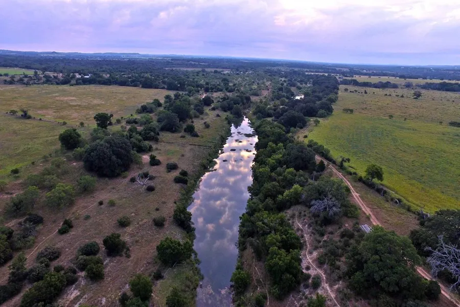 TERRAIN: The topography of Meek Ranch is marked by Hill Country vegetation, valleys, ridges, live water and springs. The highest ridge sits at approximately 1,940 ft., with the lowest river bottom situated about 300 ft. below, at 1,660 ft. Live oaks, post oaks, pecan, elm and sycamore trees, plus native grasses make up the landscape. The Southeast portion of the ranch consists of open pastures, lending itself to agricultural pursuits. A great road system traverses the property giving great access to each area of the ranch.