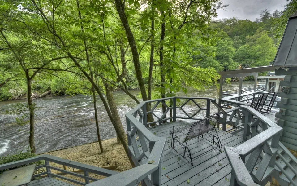 FISH OFF YOUR DECK from this Charismatic "Cartecay Riverfront" COMPOUND adjoining over 2000+ Acres of Dept of National Resources (across the River). 3 Separated Living Areas connected by Raised Decks, Walkways (above the River) plus an ELEVATED Breezeway w/"Stained Glass". Multiple Stained Glass "Accent" Windows & Transoms, Glass Block & Multiple Skylights highlights the Cedar/Drywall Interior. ALL GLASS (Anderson Windows) Sunroom for Exciting Dining & Comfortable Conversation Suite. Oak Cabinets, Tile Countertops, New Appliances & Corner Wood-Burning Fireplace w/Extended Hearth & Built-in Shelving in the LR. TWO BR Suites (one w/Loft Sleeping) w/Private "Riverfront" Decks. Detached 2-Story GLASS "Turret" offers (2) Large Bdrms & Full Bath. Stone Shoreline Patio w/Firepit & Stone Pathways. End of the Road Privacy. "One of a Kind" location. Successful Investment Property. Remodeled in 2021