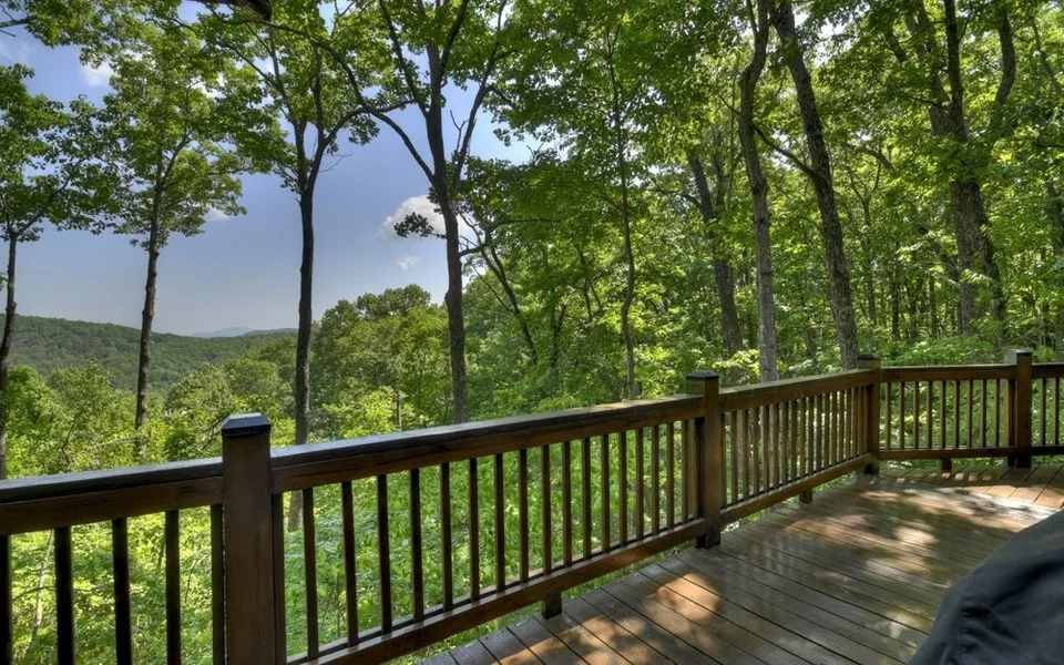Perked High Above CASHES VALLEY this D-Log Sided Cabin/Chalet features a Wrap Around Porch w/an Entry Door encased by DRY STACK STONE. Big Open Front Deck to admire the LONG RANGE... YEAR AROUND Mtn VIEWS & the Lush Wooded Acreage included in almost 3 acres...YOU OWN THE VIEW (to preserve it in the future). All Wood Interior w/10 TALL WINDOWS in the Dining & LR Area) highlighting the Great Rm. Tons of Fix Glass , (6) Tall Windows & CENTERPEICE FIREPLACE on the Chalet WALL.....ALL SURROUNDED IN DRY STACK STONE 'ROCK". Prefinished Hardwood Flrs thru out & "Round Log" Staircase leading to a Huge Open Loft. Efficient Kitchen & Main Level Master Suite (w/Space Saving Pocket Door to Bath) Guest Rm & Hall Bath finishes out the Main Floor. Upper Level "Deep" OPEN Loft /Suite w/Convenient Eve Storage. Rustic Fixtures & Appointments. (Baths feature Raised Vanities). Crawl Space Tall enough to Stand in front portion for excellent storage. Only 5 miles from the Hwy 515 Corridor in the heart of National Forest Acreage..... so close to Fightingtown Creek & the Cohutta Wilderness Area with Super Easy Access. No Restrictions on Rentals
