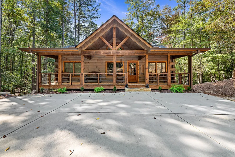 Escape to your serene retreat in the heart of the Blue Ridge Mountains! This stunning two-bed/two-bath cabin combines rustic charm with high-end finishes, making it the perfect getaway or full-time residence. Step inside to discover an open-concept living space featuring vaulted ceilings and large windows that fill the cabin with natural light. The gourmet kitchen boasts stainless steel appliances, granite countertops, and custom cabinetry, ideal for both cooking and entertaining. Each spacious bedroom offers comfort and privacy, with the primary suite featuring a luxurious en-suite bathroom complete with double vanities and walk-in shower. A second well-appointed bathroom ensures convenience for guests. Outside, enjoy the two level covered deck, and a recently added patio & fire-pit area perfect for enjoying the fresh mountain air. Included in this sale is an additional adjacent lot, perfect for your garage and built in privacy. Located just inside the gates of Coosawattee River Resort- enjoy all of the amenities including river access, indoor pool, clubhouse, and tennis courts.