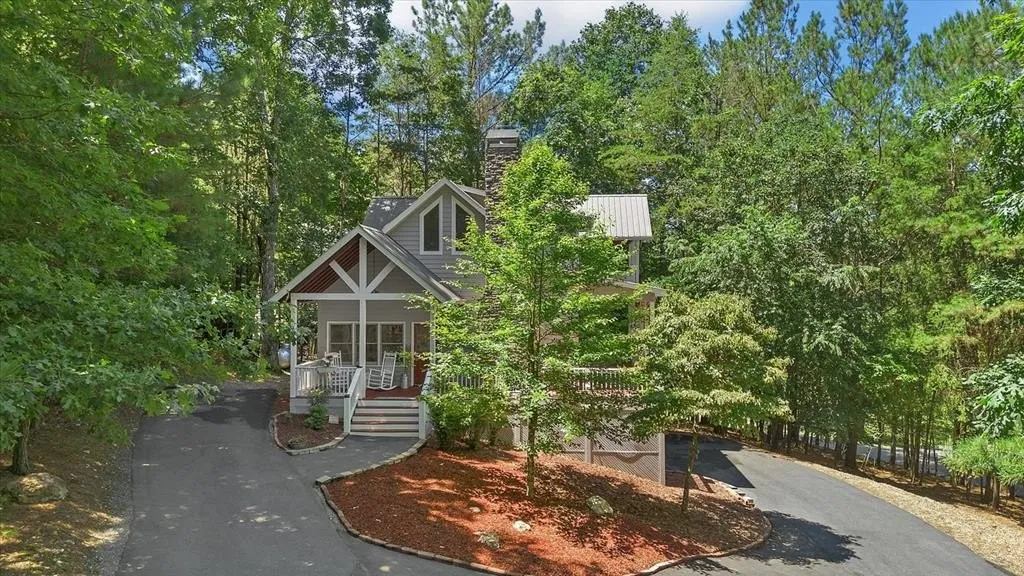 MOTIVATED SELLERS – OFFERING UP TO $5,000 IN CLOSING COSTS WITH ACCEPTED OFFER Located in the small, wooded gated community of nice homes, Woodland Acres is situated on the Cartecay river, fifteen minutes from the beautiful downtown Ellijay. The owners have spared no expense in maintaining and updating this home and it is move-in ready. Some of the many improvements include new exterior and interior paint, new high-end appliances, New HVAC, new French doors leading to the wrap around deck, all new farmhouse light fixtures and ceiling fans, inside and on the decks. The master suite opens onto its own private and secluded deck, perfect for your morning coffee. The terrace level contains a large ensuite bedroom as well as a family room. Tongue and groove ceilings throughout the home with a floor to ceiling rock fireplace. Upstairs you will find an open loft perfect for an office or library or even extra sleeping arrangements. The grounds include a She-Shed or office space with power, drywall, flooring and a mini split AC and Heat. There is also ideal room for RV parking