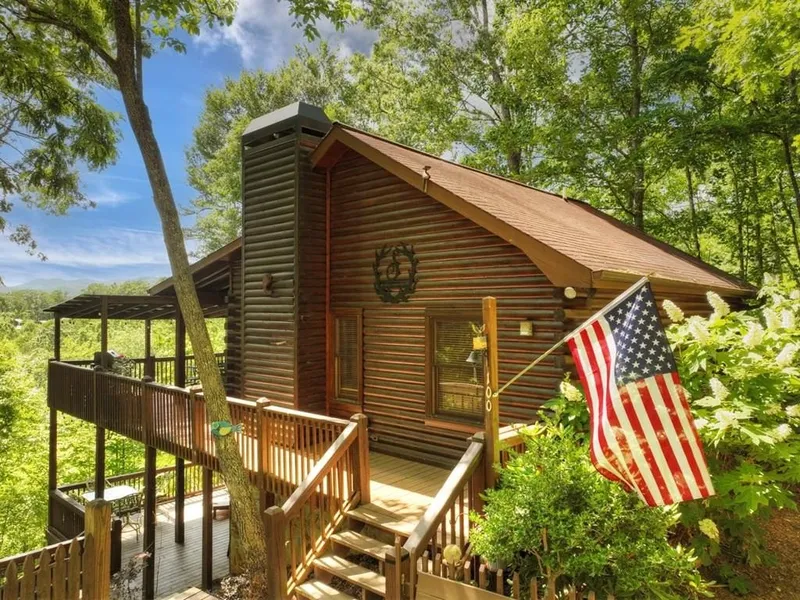 ^LOG HOME LIVING In the North GA Mtns^ Charming modern mountain cabin w/ knock your socks off panoramic ^mtn views^ for miles! 2BR, 1BA “real” log home open floor plan featuring a “mini loft” great for an additional sleeping space or as a flex office space, recreation area, etc. Feel the mtn vibe the second you walk in the door from the soaring cathedral ceilings w/ exposed beams to the rock gas log fireplace (can be converted back to wood burning) & hardwood floors throughout. Oversized covered porch spans front of home w/ hot tub & entertaining space connected by side deck + lower level decking provides additional outdoor living space & recreation area. Located in the popular Cherry Lake community w/ common access to several private lakes great for fishing, kayaking, canoeing or swimming + direct access to the Benton MacKaye hiking trail – outdoor recreation right outside your front...