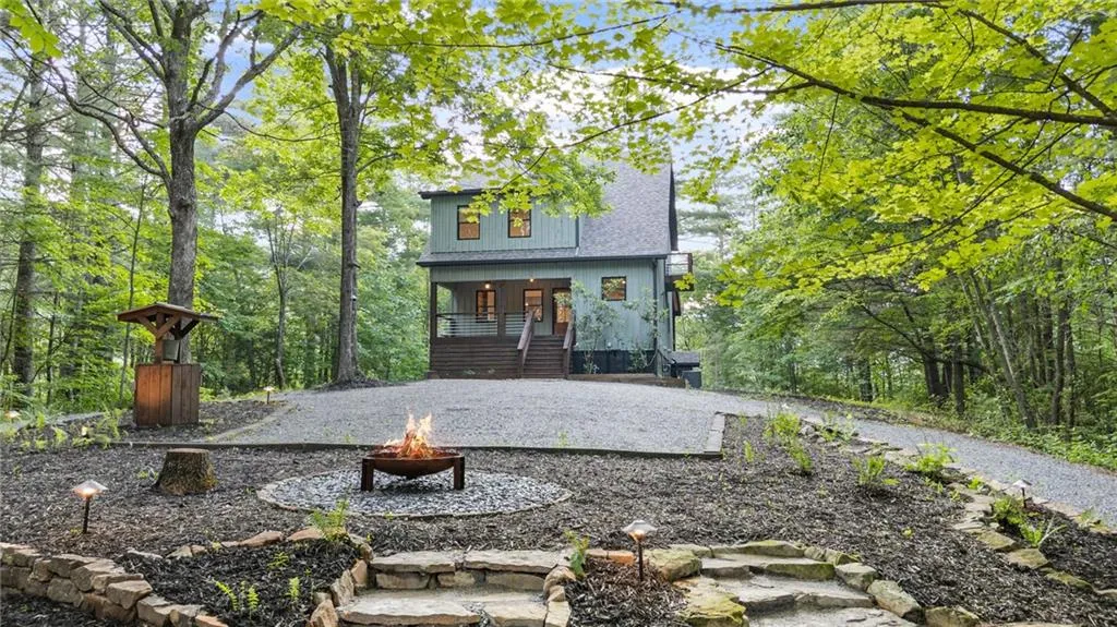 Welcome to your Nature Sanctuary! This 4 bedroom, 3 bath Fully Renovated residence is situated in the center of 3.5 Acres for unbeatable privacy. With unique charm and modern upgrades this home is a great find! Long circular driveway leads into a Move-in-Ready home featuring a spacious living room that opens into a beautiful kitchen with new stainless steel appliances, leather finish granite countertops, custom floating shelves and shaker style cabinets. Main level includes a Guest bedroom and a full bathroom. Owner's suite on the upper level showcases a custom wall with accent lighting and Juliet balcony overlooking the wooded surroundings, it also boasts a Spa-like bathroom with a luxurious walk-in shower, dual vanities and spacious closets. Upstairs you will find an additional secondary bedroom as well as a full bathroom. Lower level offers a Multi purpose use Bedroom. Large covered porch with side grilling deck(with propane hookups for Grill and porch fire pit) is perfect for relaxing with the tranquil sound of bordering Ralston Creek while enjoying year round Mountain views. Unwind at the Rock Garden Fire Pit(with low voltage outdoor lighting) which offers a captivating stargazing location. New 90% Efficiency furnace with 4-ton Trane AC and all new duct work. Backup generator hookup and Full RV hookup for temporary use. Ample interior and exterior storage and guest parking spaces. Centrally located to all North GA has to offer. Waterfalls, Hiking, Tubing, Kayaking, Fishing, Vineyards, Orchards and More. Schedule your Showing today and seize the opportunity to make this Exceptional Property Your Own.