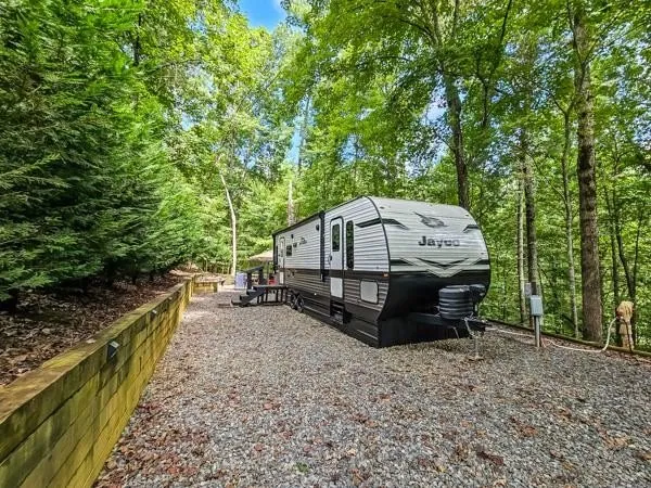 Like new camper with outdoor patio setting, firepit. Paved road, roomy camper. Cypress trees for privacy.
