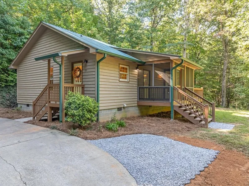 The Perfect Blend of PRIVACY, CHARM & LOCATION—Cabin Close to Everything! WELCOME HOME to this Cozy 2 BED/ 2 BATH Cabin featuring a Spacious Living Area with an Open Floor Plan. Nestled in a Private yet Easily Accessible Location, this Property Offers a GREAT Kitchen with Ample BRAND NEW Counter Space, NEW APPLIANCES, Abundant Cabinets, a Pantry, and even a Walk-In Pantry for all your Storage Needs. The Primary Bedroom is Generously Sized with a Private Bath and Large Closets. Step Outside to Relax on the SCREENED-IN PORCH, Entertain on the NEWLY STAINED Grilling Deck, or Enjoy the Large Yard Complete with a Perfect Spot for a Fire Pit or a Garden. Additional perks include NO HOA, FRESH PAINT Throughout and large Attic Space for Extras. This Cabin is an Excellent Opportunity to Step into the North Georgia Mountain Real Estate Market—Whether you're looking for a Full-Time Home, a Second Home Getaway, or a Short-Term rental Investment So Close to Town. Don't Miss the Chance to Make it Yours!