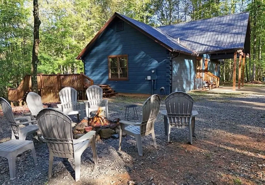 All Paved Access, Creekfront on 3 Acres, Unrestricted, Less than 15 Minutes from Downtown Ellijay. Discover your serene retreat in this woodeaDiscover your serene escape in this beautifully wooded creekfront property, ideally located just 30 minutes from both Springer Mountain—the southern gateway to the Appalachian Trail—and the natural wonder of Amicalola Falls State Park. Nestled in the heart of Ellijay's scenic beauty, this home offers the perfect bled creekfront property, perfectly situated amidst nature's breathtaking landscape. Just a short drive from Springer Mountain, home to the Head of the Appalachian Trail, and Amicalola Falls State Park—both less than 30 minutes away. As you approach the home, the eye-catching exterior with its attractive color scheme draws you in. Step onto the relaxing, spacious back deck and listen to the soothing sounds of the creek flowing nearby. Inside, the expansive kitchen and dining area are perfect for large gatherings, accommodating a 12 guests table. The kitchen features stunning granite countertops and brand-new stainless steel appliances, an inviting space for family time. A wall of windows floods the living room with natural light, enhancing the warmth that cabins offer our life style. The sprawling main floor offers convenient single-level living, complete with an office space that can double as an additional bedroom. The master suite boasts a walk-in closet, tile bathroom floors, and a walk-in shower. The bedroom features double doors that lead to the back deck, allowing you to escape into the peaceful sounds of nature and the creek. The bonus basement provides ample sleeping accommodations for guests, with four additional bedrooms and a designated entertainment area. This property offers endless possibilities, whether for full-time living or as a vacation rental. With its perfect blend of comfort and spaciousness, this home is an ideal retreat for anyone seeking tranquility and adventure in the beautiful Ellijay area.