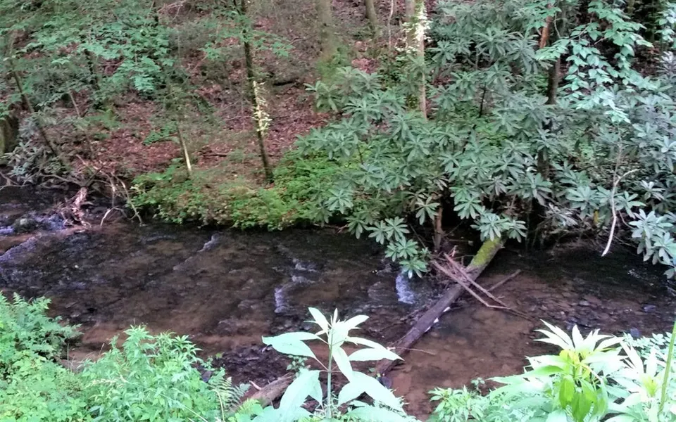 CREEK FRONT PROPERTY IN Cherry Log. 2+ acres that fronts rushing Laurel Creek. Terrain Is rolling/semi steep and is wooded with mature trees. Pease consider this tract for investment and/or that getaway future cabin!