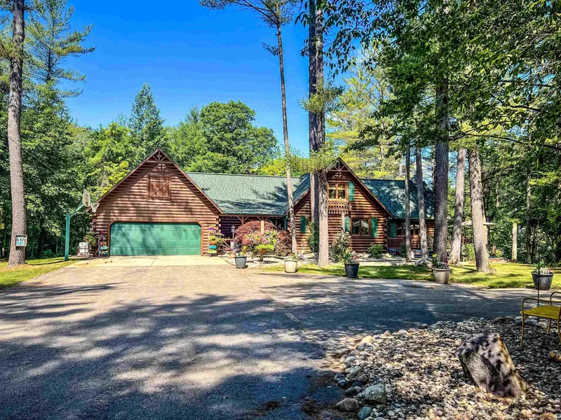 A Sanctuary Like No Other:44 wooded acres with over 2,200 feet along the peaceful Sugar River, this handcrafted log home offers a rare blend of rustic beauty, modern comfort, and private, natural splendor. From the moment you arrive, the winding drive, mature trees, and tranquil pond with a fountain welcome you into a world all your own. Step inside and you'll find the warmth of knotty pine walls, freshly sanded wood floors, and a soaring two-story stone fireplace that anchors the great room. Exposed beams stretch across the vaulted ceiling, and a north-facing wall of windows frames the river like living art. The open kitchen, dining, and living areas make entertaining a joy, while the main-floor primary suite includes a walk-in closet and private bath. Two guest rooms, a full guest bath, and a well-placed laundry room complete the main level. Upstairs, two additional bedrooms and ano...