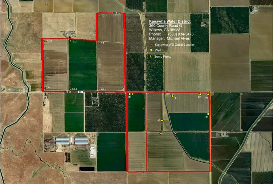 Property Use: Open irrigated cropland historically farmed to dairy forage crops including small grains, silage corn and alfalfa. Two water sources: 6 wells and Kanawha Water District (Federal Water District); Priority I & II. KWD well monitoring indicates stable groundwater at ~20 feet. Land use is transitioning from row crop to permanent plantings. Adjoining properties are planted to walnuts. Other permanent plantings in the area include almonds, olives & pistachios.