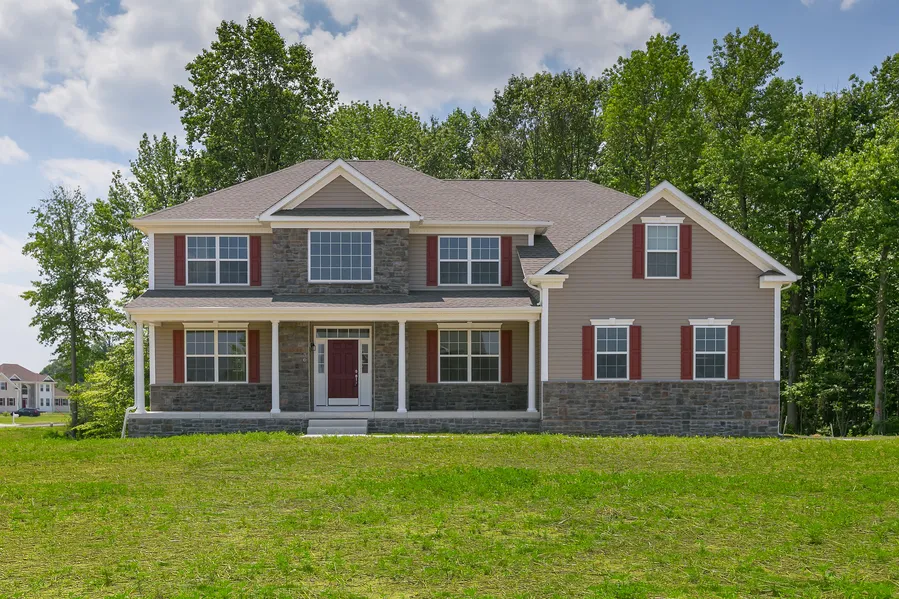 HOME IS NOW BUILT AND READY TO GO!!Distinguish Yourself!! Absolutely Gorgeous describes this Architectural Masterpiece Contemporary Baldwin Classic model home with over $72,000 in upgrades. Dressed in pebble vinyl/stone and front porch on the outside, and a dramatic entry foyer with luxurious details on the inside. The builder is looking for your total satisfaction, no cutting corners here. Home features 4bdrms, master suite w/tray ceiling, sitting room/two large walk-in closet and 2.5baths. A sunny & bright gourmet kitchen, 42" raised panel cabinetry & granite counter tops, island and breakfast area. A sun drench sunroom off of the breakfast room with bay slider. The spacious family room with 4' extension and gas fireplace, the formal living & dining rooms and full walk out basement with 8'ceilings. There are more amenities/add-ons that can be purchased, the builder will go over all details at your meeting. Other amenities include 9'ceiling on 1st floor & 8'ceilings in the basement, 2car side entry garage, stone, wainscot with vinyl siding exterior and gable roof, full front porch ceramic & H/W flooring, Kohler fixtures, two zone HVAC, recessed lighting, Birch handscraped flooring, 2nd floor laundry room with laundry tub, GE appliances, and 30yr dimensional roof all on 1 acre lots. Accessible to all major highways and shopping centers, close to Philadelphia, Delaware and Atlantic City. Truly a Magnificent Home! Additional elevations & upgrades are available! Home is currently under construction, there are only 4 lots left, reserve your lot today! Completion date around the end of December. Commission is based on the base price of the home. Please note the parcel is 1 acre. The backyard does extend well into the wooded area.