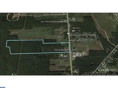 Prime 43.69 /- acres with 4000 /- sf commercial building (currently rented) with 485 /- ft of road frontage on the Black Horse Pike (Rt 322), RG-C Zoning District (business and professional offices, planned large-scale anchor store development, public service, neighborhood and community commercial, recreational and more...) and good traffic counts on Route 322 (approx 20,400 vehicles/day).