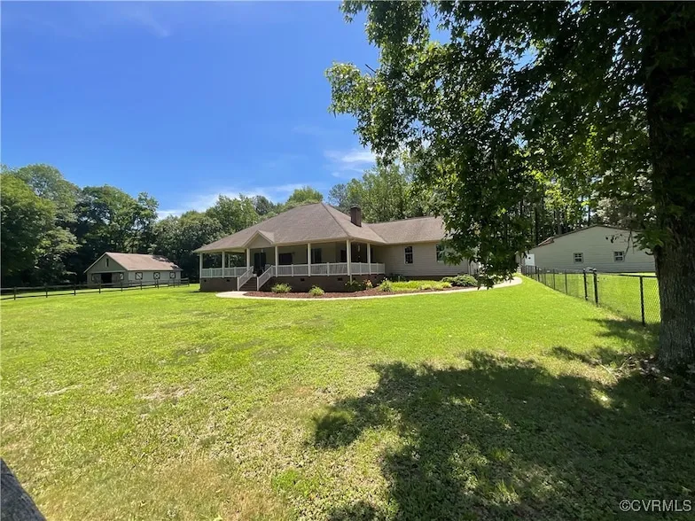 WELCOME to 4755 Aspen Hill Lane in Gloucester VA. This well maintained custom-built ranch style home with wrap around porch is situated on a 5.44-acre lot Built in 2005, the residence offers 2140 sq ft of living space including 9ft ceilings throughout as well as hardwood floors. Kitchen has been updated with farm sink, quartz tops, LVP as well as newer stainless steel appliances. The spacious primary bedroom offers an ensuite with jetted tub, double vanity, a walk-in shower and two walk-in closets. Exterior features include a 36'x36' four-stall barn with a concrete center aisle, hay storage above, water and electricity, making it ideal for equestrian enthusiasts. There is also an oversized 2 car attached garage and a 32' x 44' - 4 bay metal building and a fenced dog run. Enjoy peace and privacy in the outside living space with rear covered porch and an above ground pool with surround decking with gazebo to convey. Crawl space has been encapsulated.