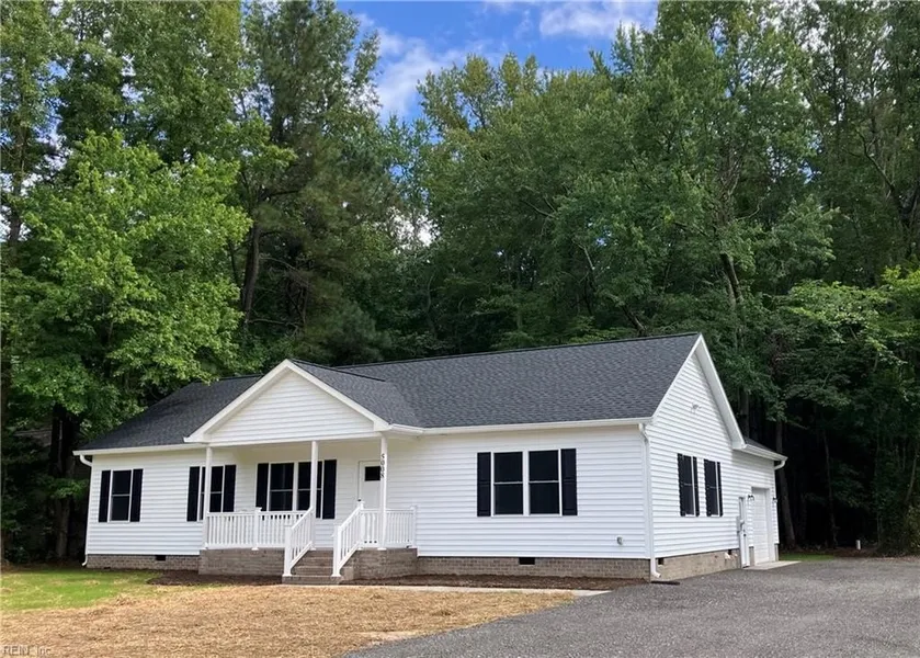 NEW CONSTRUCTION on 1.39 acres! Charming rancher with welcoming front porch. 1540 SF featuring 3 bedrooms and 2 baths. Kitchen features white shaker cabinets with granite and S/S appliances. Dining Area leads to 10x16 deck. Family Room offers a coat closet, LVP and lots of room. Spacious Owner's Suite with large walk in closet. Spa-like en suite bath with dual sinks, storage, water closet and walk in tiled shower with bench. Two additional generous sized bedrooms. Finished 22x20 garage with 8’foot door; two pedestrian doors, and enters into the Laundry Room. Brick foundation on all sides.