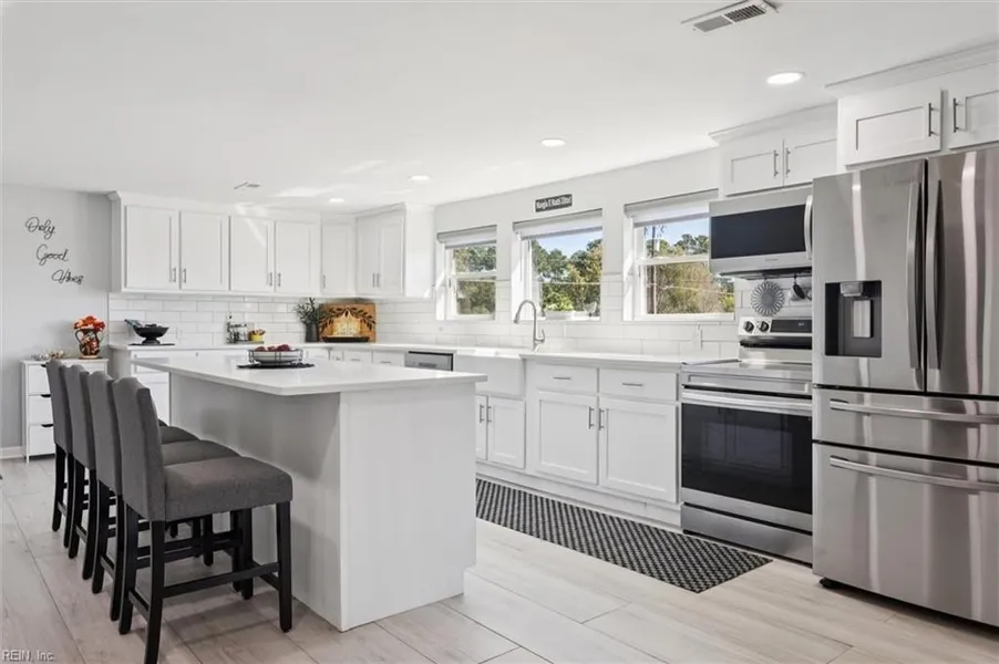 Beautifully updated, charming & spacious home, windows galore! Redone in a beautiful modern coastal flair. Majority of upgrades in 2020, new kitchen, island, all appliances, washer and dryer and multiple ceiling fans. There are 4 decks, main entrance, office, family room and upper level bedroom. The top bedroom has the best view of the river, near original wood floors and a vaulted ceiling that adds to it's charm. Lots of storage. Waterhouse, water softening system and septic also new in 2020. Updated asphalt roof and garage door 3 yrs old.