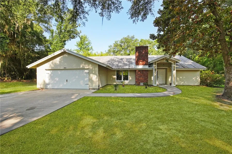 If you are looking for acreage that offers a gorgeous updated home plus a large garage for all of your toys--this is your sign. 3 large bedrooms with 2 full baths, an open floor plan, a gorgeous wood burning brick fireplace, a den that is made with stunning wood and a kitchen that is spacious. Off of the kitchen you will find a large screened in patio with a Sauna. Outdoors you will find large Oaks, Bamboo that offers privacy and the large metal garage with 2 bays that includes a covered RV hookup and 2 driveways. This property offers everything that you would want and is not in an HOA. Call to make your appointment today.
