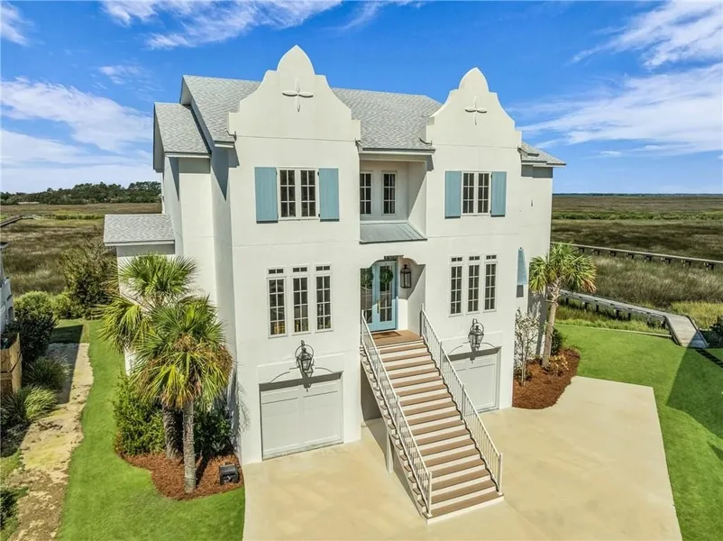 Welcome to 17 Atlantic Point Drive, a sophisticated, hidden coastal retreat completed in 2023. Nestled within a secure gated community on St. Simons Island, this custom-built estate offers heated 4,950 sq ft of living space, featuring 6 bedrooms, 6 baths, 6 car garage, and sweeping marsh front views.