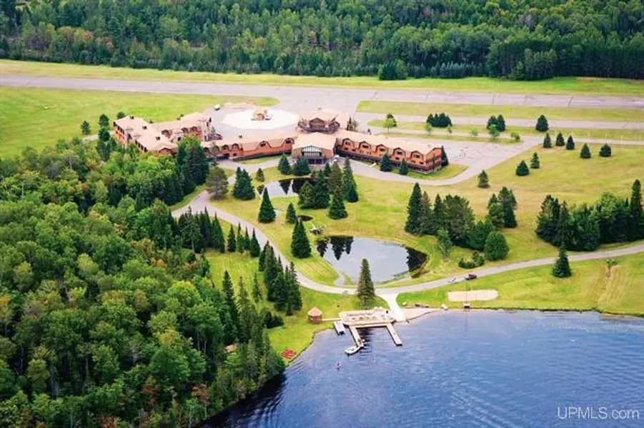 FOR SALE - SECLUDED CONFERENCE AND RETREAT CENTER ON 2,000 ACRE WILDLIFE SANCTUARY! - This exciting property is basically surrounded by the Ottawa National Forest in the western Upper Peninsula of Michigan. It includes a large hotel-style guest lodge, a 200+ acre lake, several guest houses, and even a nearly mile-long runway for jets and private planes. - Ideal for recreation, reflection, and meetingswhether the group is small or large. - The Main Lodge provides accommodations for up to 200 guests in abeautiful setting overlooking the large lake. It includes a commercial kitchen, scenic dining area, gymnasium/hangar, rustic styled rooms, and is located next to the runway. - This idyllic setting includes several smaller lakes, cabins, storage sheds, mechanic shop, barns, and plenty of space for hiking, boating, and fishing. - The large 243-acre lake is privately controlled by the owner and a few other parties who own small parcels around the lake. - There are miles of curved, and gently slopped paved roads, and woodland trails throughout the property that offer breathtaking views of the beautiful water bodies and the forests. Fall hikes are especially enjoyable through the picturesque vibrant red, orange, and yellow hued trees. - The level to rolling parcel is heavily wooded with Northern hardwoods and Conifers. - This is a great place to commune with nature quiet sports include bird and wildlife viewing, and photography and on special nights you can see shimmering auroras across the horizon. - The property is surrounded by US Government owned land and along one side of lake are some privately held seasonal and year-round dwellings. - Snowmobile Trail Number 3 passes south of the property. - located west of Watersmeet - See attached video. - Pre-Qualified Buyers Please Contact Us For A Private Tour! - The property consists of twelve frame constructed buildings. For Details About The Buildings See Associated Documents.