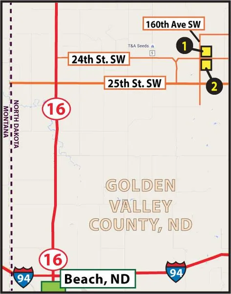 Research Parcel InformationDriving Directions: From Beach, North Dakota proceed north 8 miles on ND Highway #16, then 5 miles east on 25th St. SW, then 1 mile north 161st Ave. SW, then 1 mile east on 24th St. NW. This will place you at the nothwest corner of Parcel 2 & the southwest corner of Parcel 1.