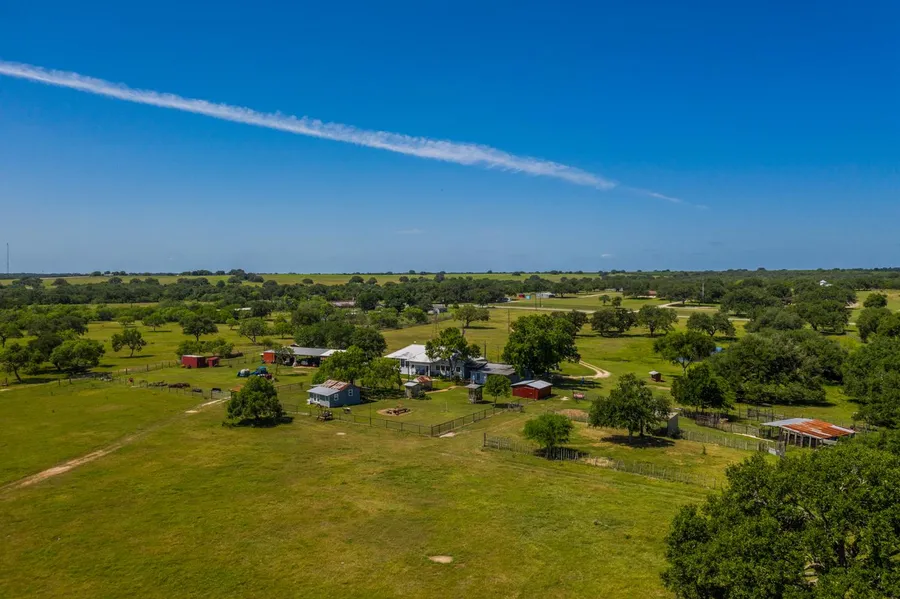 A gorgeous home created by connecting the original farmhouse, which was built in 1964 and an old Baptist church serves as the centerpiece of this wonderful South Texas property. There is also an 800 square foot guest home. Several barns and sheds are also located in the home compound.