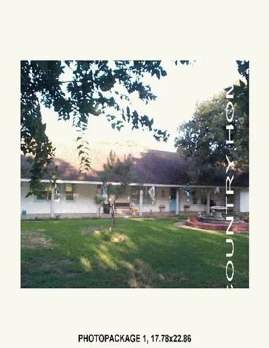 The main house has a large country kitchen with approximately 36 ft. of counter top, pantry, double oven, dishwasher, stainless steel sink and light gray ceramic tile floors. A plate rail surrounds the dining room for the antique plate display. The adjoining living room has a corner fireplace with built in cabinets on both sides of the fireplace. Two bedrooms and a bath and a half are located on the north end of the living room and the master bedroom and bath are located on the south side of the dining room. The master bath has a double marble vanity top, ceramic tile shower, a marble whirlpool tub and an adjoining walk in closet. Ceiling fans are locate in each bedroom and the living room. A glassed-in porch is located off the living room, across the rear of the house. This porch has sixteen feet of built in Oak cabintes for storage. This porch makes a great home office place. The morning sunrise lights up this porch. A covered porch 60 ft. long is located on the front of the house and a 40 ft. covered porch is located across the rear of the porch. A large fish fountain is located in the front yard.