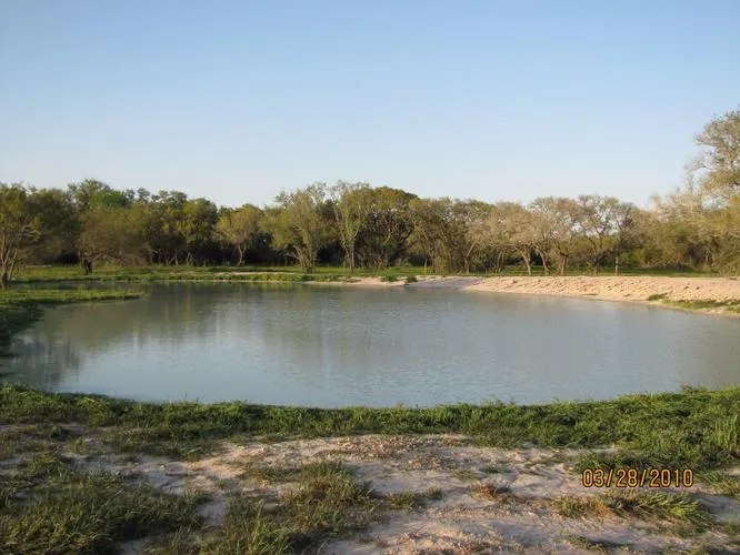 Enjoy a family outing around the beautiful, large stock tank or set up your tent for a weekend deer hunting trip. This is also a haven for dove, quail and ducks in addition to a watering hole for deer, hogs, turkey and other wild game animals. The stock tank is 30 foot deep and stocked with Talipia fish, which makes a tasty meal around the camp fire. There is electricity and a new (one year old) 105 ft. water well near the stock tank. Good fences all around, Ag Exempt, has highway frontage and the survey is three years old. The mini ranch is flat with Oaks and Mesquite trees and when the grass is cut, it looks like a park. But there is enough brush for deer to make a home. There is a large ranch to the north and an even larger ranch in back of the property.