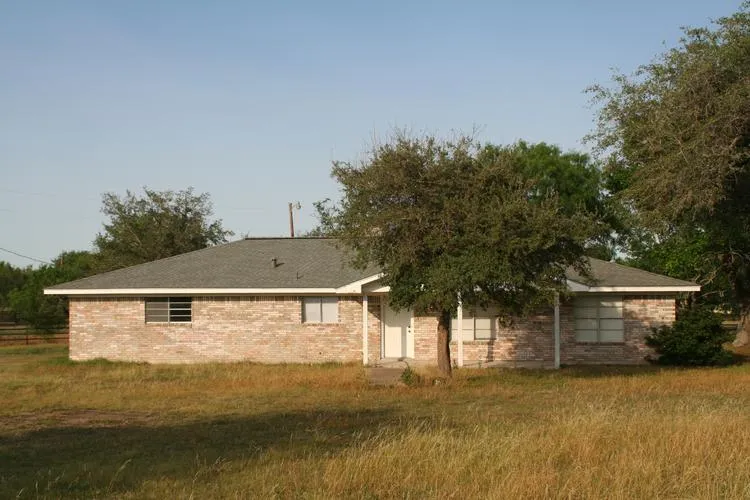 The pipe corrals measure approximately one-third acre with multiple cells, water, tack room, sheds, loading and squeeze chutes. The metal main barn with two enclosed work rooms measures 4,000 sq. ft., and the twelve acres of pasture with liveoaks and mesquite are perimeter-fenced with goat wire. Drive by for a quick look, or call for showing appointment.