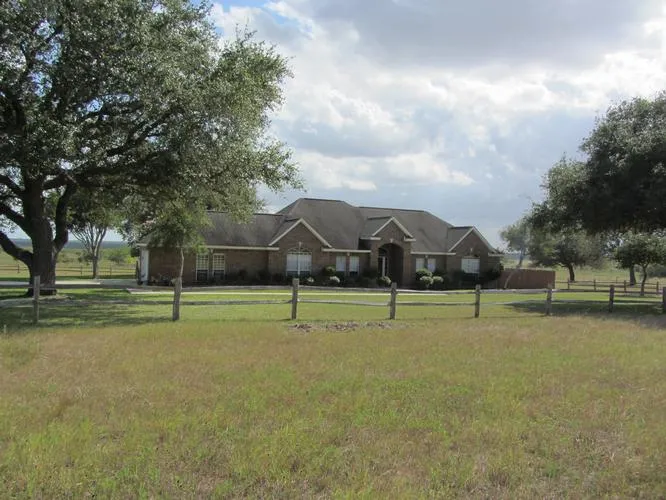 Expansive view of San Antonio River Valley & the historic Baker Ranch. Five minutes to Goliad. Only large property owners for neighbors. Rolling terrain. Most attractive fence line on HWY 239W. Beautiful sunset view over a large hill just west of the property. Property is fenced with 5 strand barb wire and King Ranch on front and left side of home. Small pond. Asphault driveway into the property. Orchard consist of Plum, Pear, Peach, Loquat, Mulberry & Fig Trees. The pond is engineered to catch run-off from major rains. Excess water runs down the property, hits the dirt barricades put in place & runs directly into the pond.