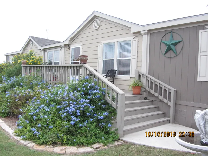 You will love quiet country living while you sit on your 40' covered deck and watch the wildlife as the feed around a stocked pond. A gorgeous 2010 manufactured home with over 2300sq ft 5 bedroom 2 1/2 bath, 2 living areas, large kitchen with cooking island , dining area, large laundry room and large master bedroom, with huge walk in closet. All electric with wood burning fireplace. Nicely landscaped fenced yard.32 acres contains 2 water wells, 2 septic systems, Hunting cabin, barn, two storage sheds, feed barn. Deer blinds, lots of deer, dove quail. coastal and brush.
