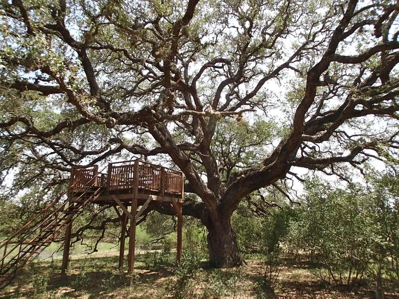 This Goliad County ranch is home to some of the largest and oldest oak trees you will find anywhere. Bisected by Manahuilla Creek, it also boasts 4 lakes of 11, 7, 3, and 2 acres when full to capacity. The largest near the headquarters is stocked with bass and can be supplemented with a 15 gpm well.