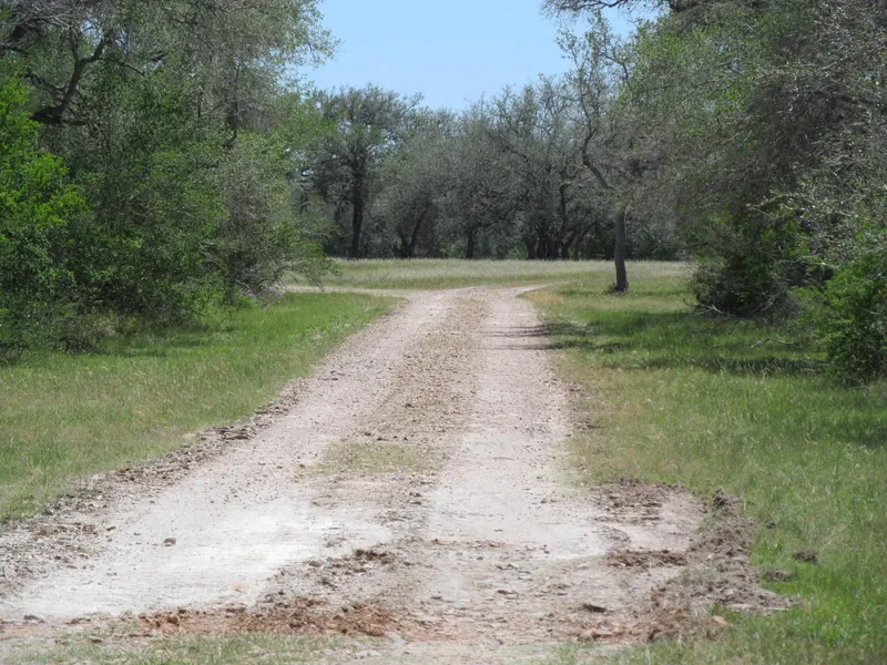 Goliad, Texas - Home on the range! Beautiful south Texas ranch. Loaded with game, no recent hunting. Paved frontage on two sides of the ranch, Karnai Rd. and Oilfield Rd. This ranch features rolling terrain, lots of Oak trees and native brush, improved and native grasses, a large stock pond and two water wells. There is a large, 1800 Sq. Ft metal barn with a concrete floor, a separate implement shed and a set of pens. The home was custom built and features tile flooring, fireplace, three bedrooms, 2 baths, office, formal dining room and a family room. The property is fenced on all four sides with barbed wire fencing, all fencing is in good repair. The home is fenced with a separate yard.
