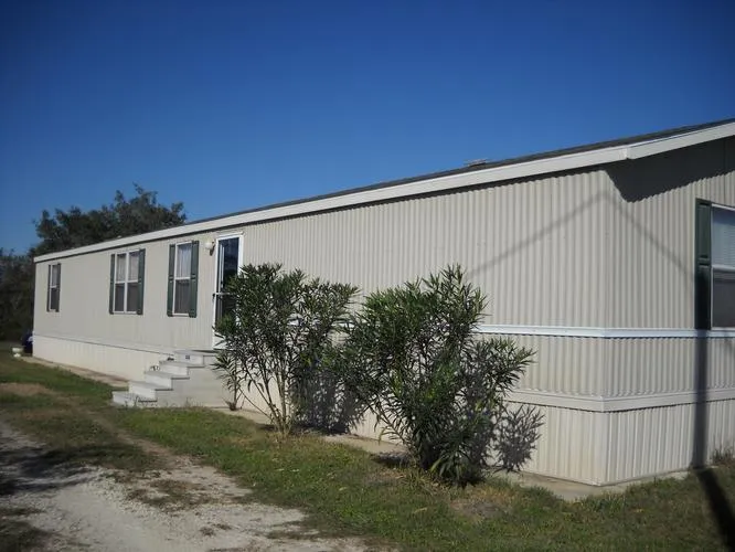 3 bedroom 2 bath home sits on a cement slab with an added on back porch the length of the home.
