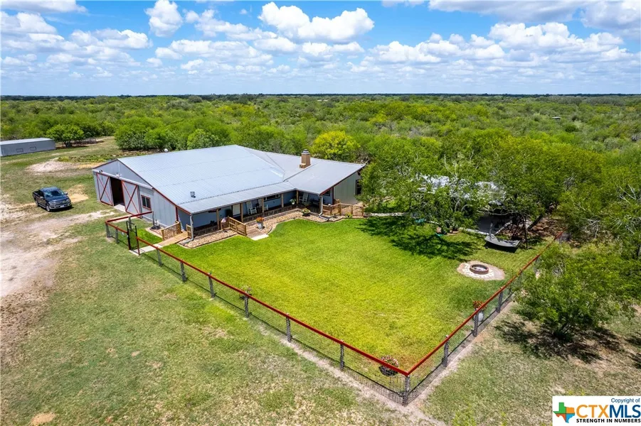 Just 5 miles northwest of Goliad rests this turn-key, pristinely kept ranch with black top frontage. Surrounded by natural elements, brush, and mature trees, this property is ag-exempt and fully equipped for hunting and wildlife. A flawless trail system has been put in place to provide easy navigation when hunting. The beautiful single-story home nestled into this natural property highlights rustic charm and provides enough space for any living situation or hosting guests. Gorgeous wood details are present throughout the common area as well as the 3 bedrooms, 3 baths, and private study which includes 1 of the 2 queen size Murphy beds. Outside, the 21 X 26 ft patio with sink is perfect for enjoying the evening breeze. The barn and garage provide ample storage for ranch toys. The shooting range, deer hanger, and chicken coop are added benefits to the land. Provided with a Generac generator and plyboard for hurricane season, recent landowners have thought of everything.