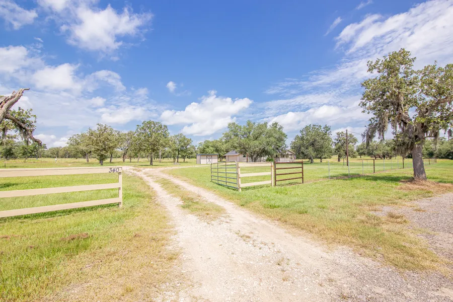 From Goliad, go north on US-183 for 9 miles. Then take a left on State HWY 119, continue for about 1.5 miles. Next turn left on Deer Trail, it's a dirt/gravel road right off of the highway. Continue on Deer Trail for .3 miles. Once you come up to the second hard left bend in the road, before you around the corner, the home will be straight ahead. It is gated (unlocked) with a circular drive.