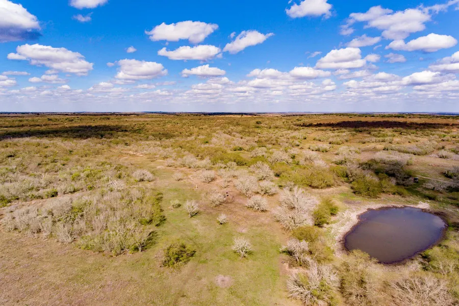 Ranch terrain is mostly level with gentle slopes toward Indian Creek - a wet weather creek, which runs through the north-east portion of the ranch. Huge, mature oaks are located along the creek. Approx. 50+/- acres of pastureland near the highway is in hay production. Remaining acreage consist of a mix of native pasture with mesquite, Texas Persimmon, huisache and a variety of other South Texas brush. Ranch drains well with only a small portion of the ranch along Indian Creek in the 100-yr floodplain. The ranch is currently leased for hunting and includes two small hunting cabins. Wildlife includes deer, turkey, hogs, dove and quail. Most of the fencing is in excellent c...