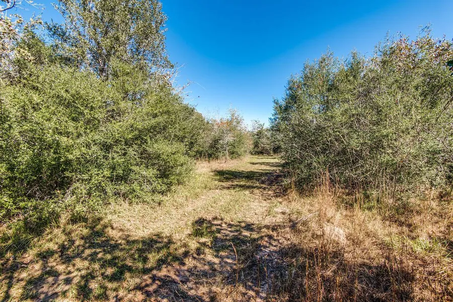 TERRAIN: Surrounded by several large neighbors, end of a quiet paved road, abundant post/live oak trees, covered in native grasses, selectively cleaned up, and in Goliad School District