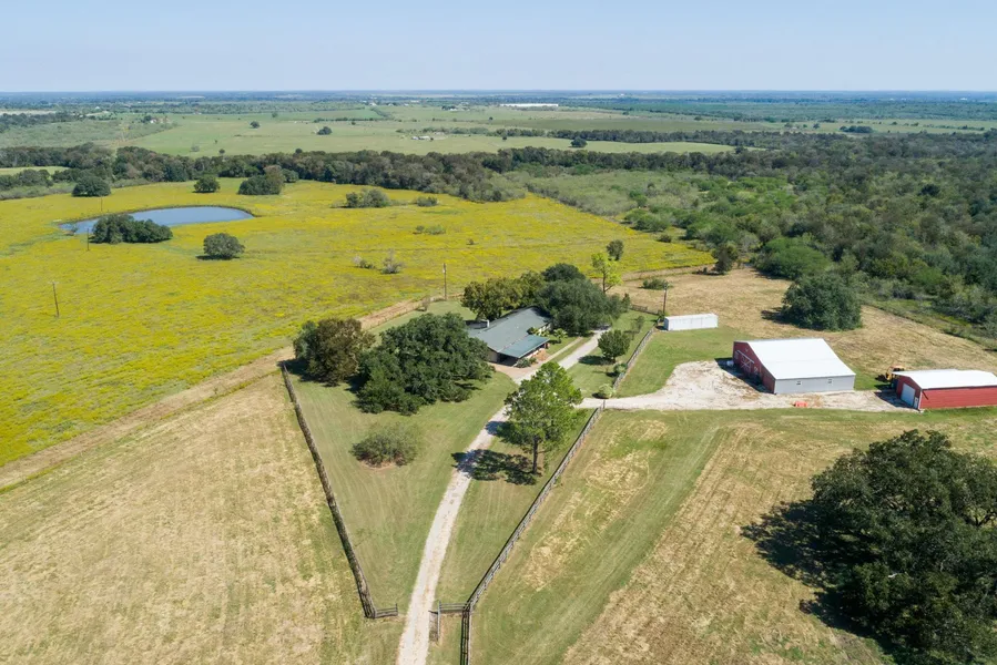 Hardwoods consist of live oaks, post oaks, elm, cedars, mesquite . Mature historic live oaks and the winding road to the home give it that true Texas ranch feel.