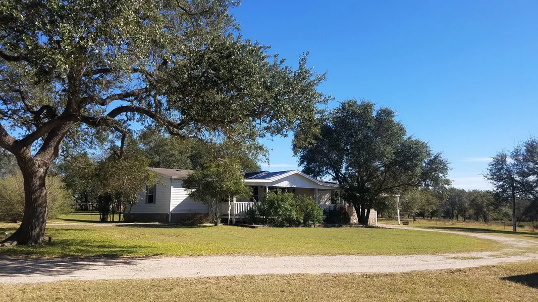 The home and acreage has beautiful live oaks and a winding driveway which leads to the 1800 sq ft 4 BR/2 BA, CA/CH, manufactured home. The addition on the south side has one room off the master bed room with extra closet and one room off utility room. This bonus room was used for a class room. Both rooms have vaulted ceilings and beams. The exterior of this area is hardi plank. Attached to this addition is a nice car port.