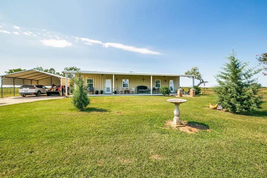 Improvements include a 1350 square feet metal home that has been fully finished out on the inside. This home features 2 bedrooms and 1.5 bathrooms with 2 living areas as well as a large kitchen and dining area. The front covered porch provides excellent views of the ranch and sits on the highest area on the ranch. Multiple cross fences have been added for pasture rotations as well as hay production and there is a set of pens located on the South side of the ranch. A new conventional septic system was just completed this year as well.