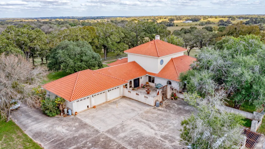 A beautiful 4105 Sf house over looking 89 plus acres in Gonzales on Cr 232, The house sits on a high hill which gives you great views on the pastures and the San Marcos River which consist of 1250 Ft. The house is a beautiful 5 bedroom 4 bath 3 car garage that has been a place for family gatherings for years. There are horse stalls with covered round pins and equipment barns which makes this a move in ready property.