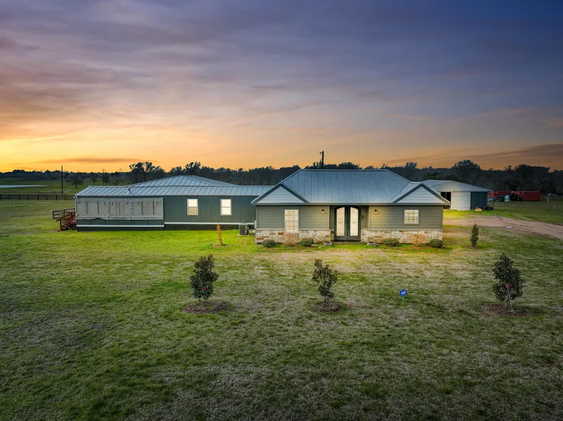 Gently sloping 46+ acre ranch nestled in-between San Antonio and Houston off IH10 offers ideal terrain with fenced and cross fenced pastures, a modular main house with permanent addition containing 3 spacious bedrooms, 3 baths, 1 half bath, formal living, family room, open-air garage and attached work shed/shop. Two metal barns with tack room and dog kennel perfect for equipment or animal storage. Currently ag exempt with pens, fenced orchard, kitchen garden and more! It is the perfectly sized country home or weekend escape with the perfect amount of character and charm. Small stock tank/pond. Well and aerobic septic system on-site. - 3/15/2023 10:00:39 AM