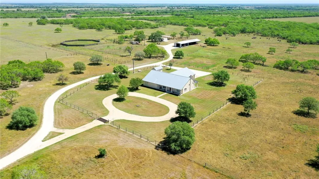 Tucked behind beautiful tree lined county road footage, you will find a beautiful 3 Bed, 2 Bath, 3700 Sq.Ft home draped on all sides with limestone and topped by standing seam galvanized roof, featuring spacious front and back porches with 3 car attached carport. Inside your new home, stretch out in the open living space with all the thoughtful amenities of luxurious country living. Large kitchen island with sink, double oven, propane cooktop, walk-in pantry, and magnificent decorative ceiling in the family room are just some of the great additions, serviced with GVEC high speed internet and Gonzales Co. Water Supply. Outside the home awaits a perfect respite for cattleman and horse lovers alike. Enjoy the oversize round pen and roping lane or ride the 120 fenced and cross fenced acres that is complimented by scattered trees and also open fields. Other improvements include an equipment shed with tack room and 4 stalls, holding pens, and an additional 1200 Sq.Ft shop for tinkering and projects, plus a mower shed that matches the facade of the main house. This property checks all the boxes and is located in serene seclusion, but close enough to town with short commutes to Gonzales or Seguin, and only 1 hour to the Austin Bergstrom Airport. Thoughtful consideration was given to the layout and construction of every inch of this property and it is ready for you to write its next chapter. Call today for your private showing.
