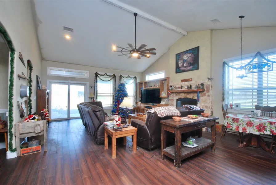 Motivated Seller!! Need space with light restrictions? Come take a look at this 2,638 SF, 3 bed, 2 bath home with an office and open floor plan. The home features custom rock work, custom cabinetry, vaulted ceilings in the living room, stainless appliances, an open living room, dining room, and kitchen area, as well as a mud room that leads into the spacious workshop. This sturdy built home is ready for you to make it your own and complete the finish out. Choose your own flooring, vanities, and counter tops, and make this home your own. The house sits on 7.82 acres and includes an attached 1,792 SF shop. Just 1/3 of a mile of paved FM 1115, the property is just 10 minutes north of I-10, featuring convenient access to and from Houston and San Antonio, and just an hour drive north to Austin. This is a perfect opportunity for the home investor to complete the construction with some TLC. Come enjoy the country views and live a the country life!