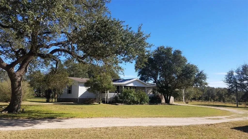 11.6 acre property in perfect location, neatly organized, approx 7 miles west of Moulton off FM 532 Home & acreage w/beautiful live oaks & winding driveway which leads to 1800 SF 4 BR/2 BA, CA/CH, manuf home. Hardiplank addition on south side. Carport attached to addition. Built in 2000, house features open concept. Pantry in kitchen & separate utility has backdoor leading to enclosed porch. Large covered front porch w/composition flooring affords views of the surrounding pastures, wooded areas, wildlife. Property consists of mix of pasture areas, cleared & partially wooded areas. 3 crossed fenced areas for livestock each w/water troughs. 2 Morgan storage bldgs. w/electricity. Also for storage are 2 containers. Livestock shelter has 3 pens containing water & are perfect for FHA projects . "Goat type" fencing. Property has 3 gated entrances & room for any future building projects.