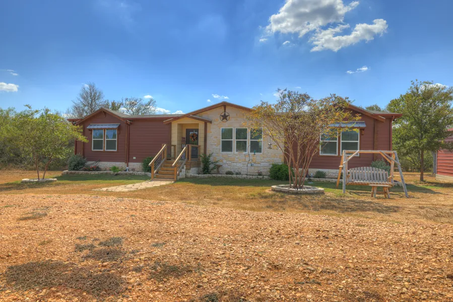 Nestled amidst the serene embrace of the countryside, this remarkable 3 bedroom 2 bath home is a true slice of rural paradise. Sitting on a sprawling 13.358-acre estate, this property embodies the quintessential charm of country living, offering a perfect blend of modern comfort and natural beauty. Approaching the property, you're greeted by an impressive newer fence with a solar powered automatic gate entrance, setting the tone for the privacy and security that defines this haven. As you drive through, a picturesque scene unfolds before your eyes--a classic red barn, crepe myrtles, a young orchard with peaches, pear and citrus trees along with a raised bed garden. The heart of this home is a welcoming and spacious living area, where large Anderson easy-clean windows flood the space with natural light and frame stunning views of the surrounding landscape particularly of the backyard pond from the kitchen window. The open concept kitchen beckons with its stainless steel appliances, reverse osmosis system, and a center island is perfect for casual dining and entertaining. The master suite is a spacious retreat designed with your comfort and convenience in mind, including a large walk-in closet and a bath boasting exquisite features that transform your daily routine into a spa-like experience. Outside, the property truly shines. Step onto the expansive deck and take in the breathtaking panorama. Overlooking a serene pond with a deck and bench, you can spend leisurely afternoons fishing or simply enjoying the tranquility. As the sun sets, gather around the firepit for stories, marshmallows, and star gazing. Escape the hustle and bustle of the city and savor the peace, privacy, and serenity that this home in the country offers. With every modern comfort and an abundance of rural charm, this property is more than just a home; it's a dream come true for those who cherish the country way of life. Welcome home to your very own slice of heaven.