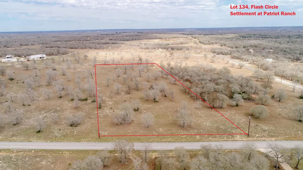 This lot offers several mature Oak trees and it's nicely secluded, just waiting for your dream home! Approximately 5 acres in the gated, Settlement at Patriot Ranch subdivision offering small acreage, countryside home sites with a great location just 5 miles South of Luling off of State HWY 80 in Gonzales County allowing for easy access to Houston,San Antonio,Austin,& South Texas. Subdivision amenities include Patriot Park for catch & release fishing,swimming,& park area. Aerial photos depict approximate lot lines, to be verified.