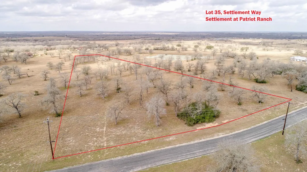 This lot offers peace and quite at this very secluded area of the gated Settlement at Patriot Ranch subdivision. Subdivision amenities include Patriot Park at entrance for catch and release fishing, swimming, and park area with picnic tables and charcoal grills. Paved road frontage throughout. Water well and Septic Systems required. Aerial photos depict approximate property boundary lines to be verified