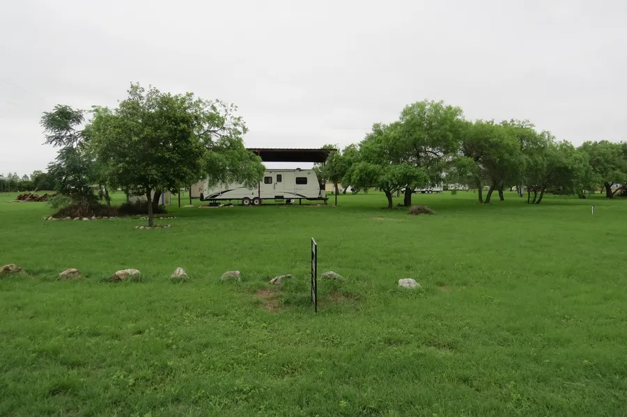 Package Deal! .50 acre lot with a 2007 Keystone Cougar Travel Trailer! The trailer has a metal pavilion that covers entire trailer! This trailer is clean and in great condition! Very well cared for! 2 bedrooms, with 2 roll outs. One bath with shower tub combo. Full size bed, two bunk beds and a couch that will convert to a bed. The trailer is 32 ft long by 8 ft wide. Nice metal storage unit included. Co-op water and electric on property. Water is with Gonzales County Water Supply and Electric is with Guadalupe Valley Electric Coop. Located close to the Guadalupe River and Lake Wood. Inquire about the status of Lake Wood and the dam re-construction. Country views and lots of wildlife! Great getaway place. Great deal!