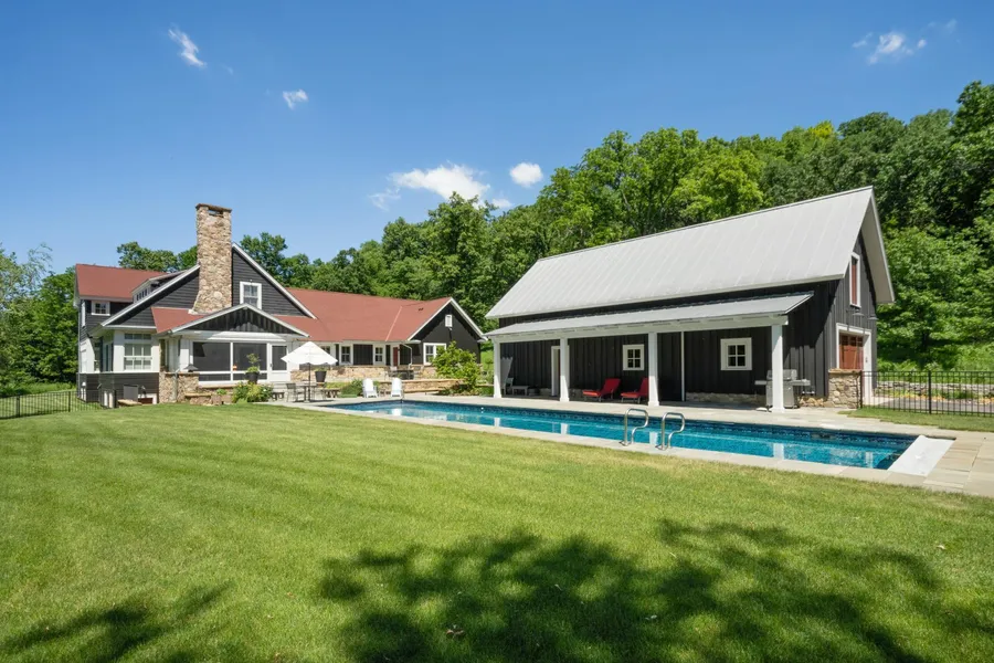 Whether you are trying to find your own private retreat or to create a homestead property, this well planned home, sited atop a hill with views of the Cannon River & all the natural splendor that surrounds it, creates a welcoming environment. Gather around the hearth inside or out; enjoy the refreshing pool as the swans fly overhead; celebrate formal and informal occasions and still find room to spread out in the tranquility of the porches or the more lively spaces within the home. Main floor owner's suite is opulent & private. The three upper level bedrooms & baths are complimented by a central living room & balcony with views to the river.The upper level also has separate living quarters with its own kitchen, dining & sitting areas. This flexible space would be ideal for long term guests or remote office with space for in person meetings. The lower level is ready for your custom touch....