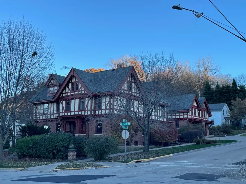 This Tudor Revival home offers over 5,500 finished square feet of living space with hardwood floors, grand staircases, custom built-ins, original light fixtures, stained glass, coffered ceilings and historic charm! The main level has a living room, foyer, office, formal dining room, sun room, large eat-in kitchen, two pantries, a mud room, a 1/2 bath and two fireplaces. The fireplace on the main floor is wood burning and beautiful. The second floor has five bedrooms including a primary suite with two walk-in closets and a private 3/4 bath. There are two full baths on this level as well as a laundry room. The third floor has a billiards room, game room, play room and two storage rooms. There is a full basement with many rooms for storage. The detached garage, or carriage house, has two tandem garages as well as a full upper level originally built as a basketball court! There is a basement...